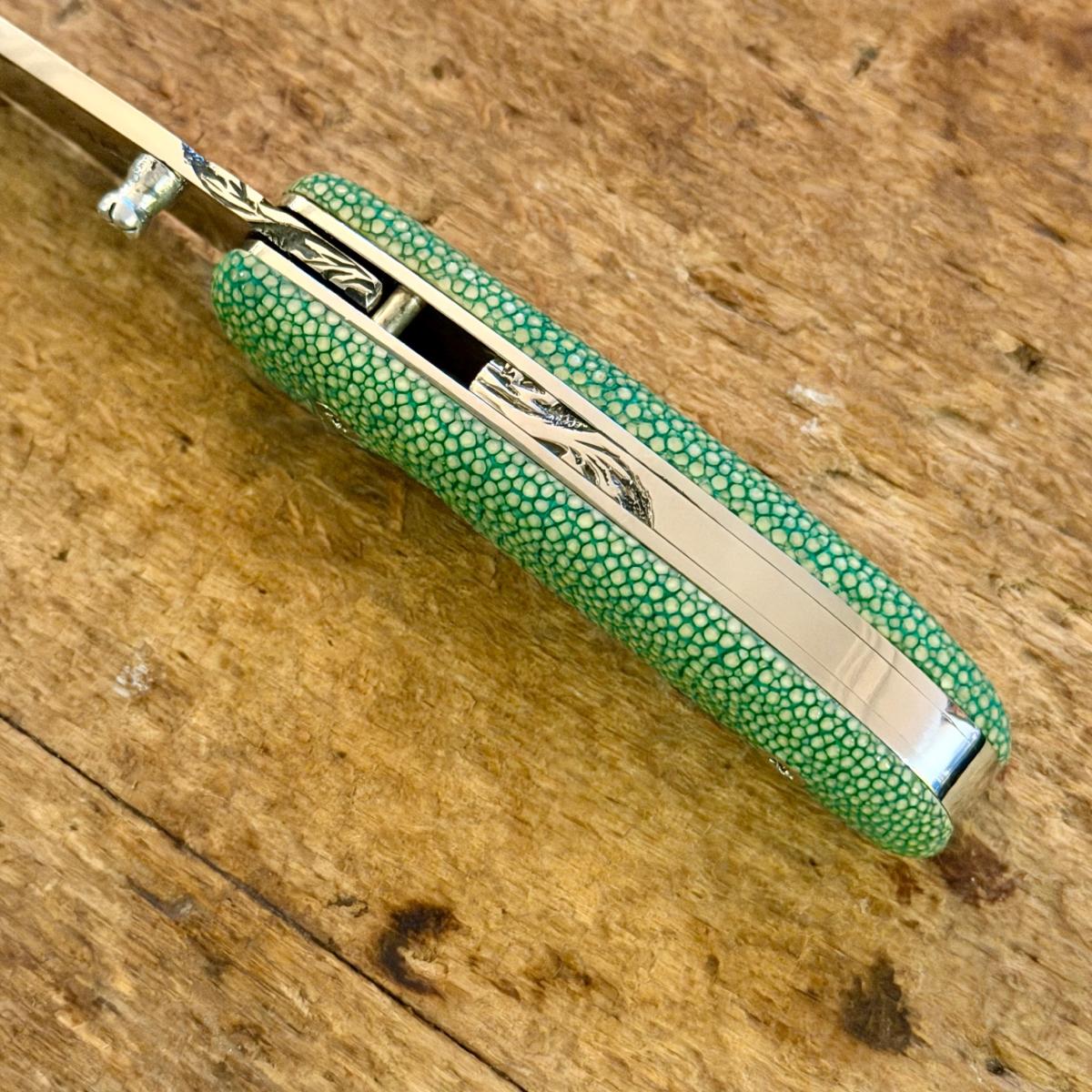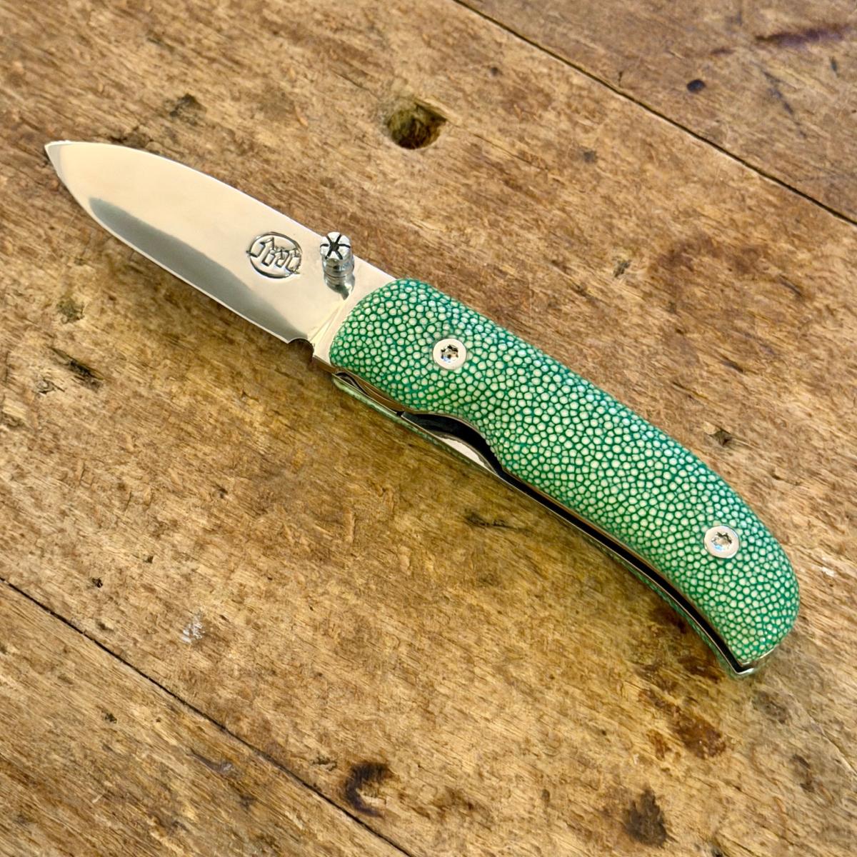 Lame en acier inoxydable forme drop point, dos partiellement guilloché
