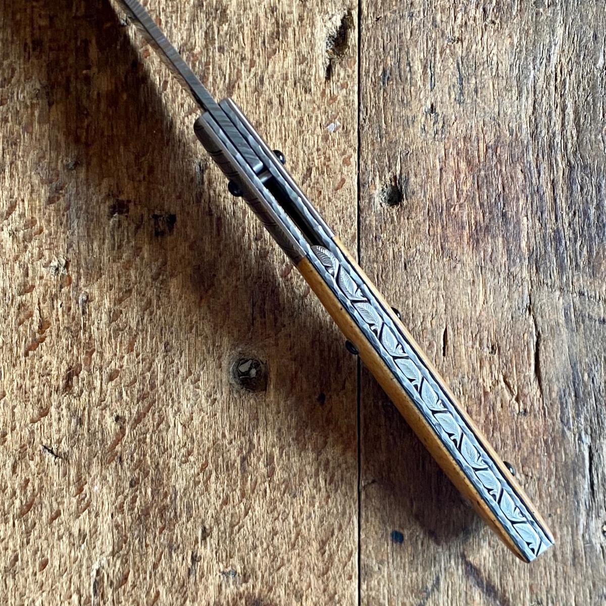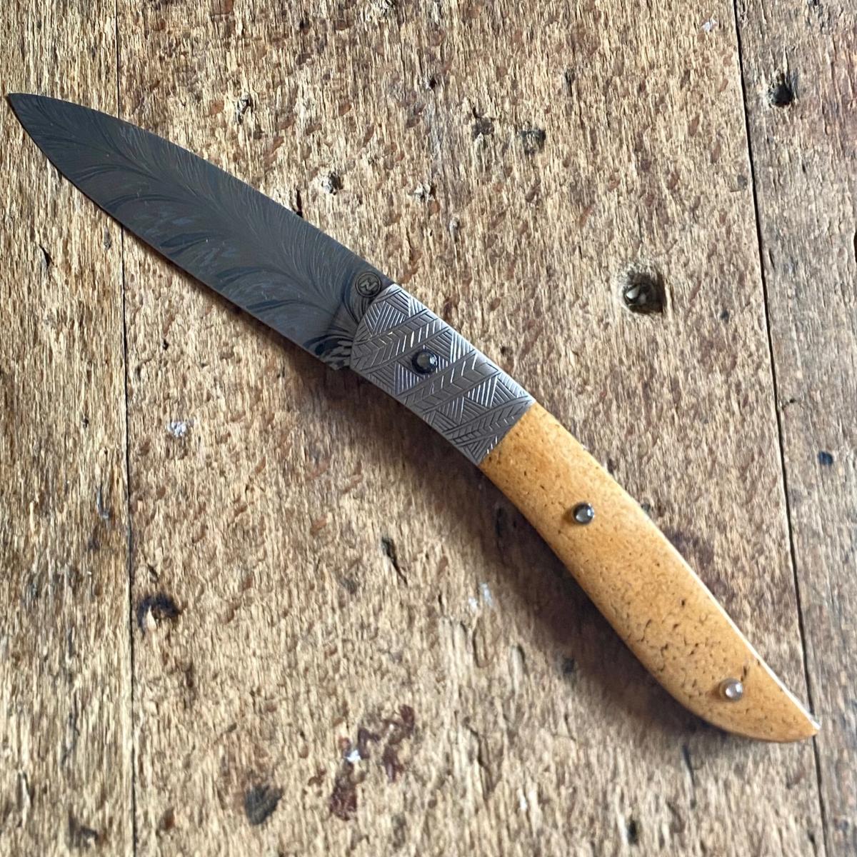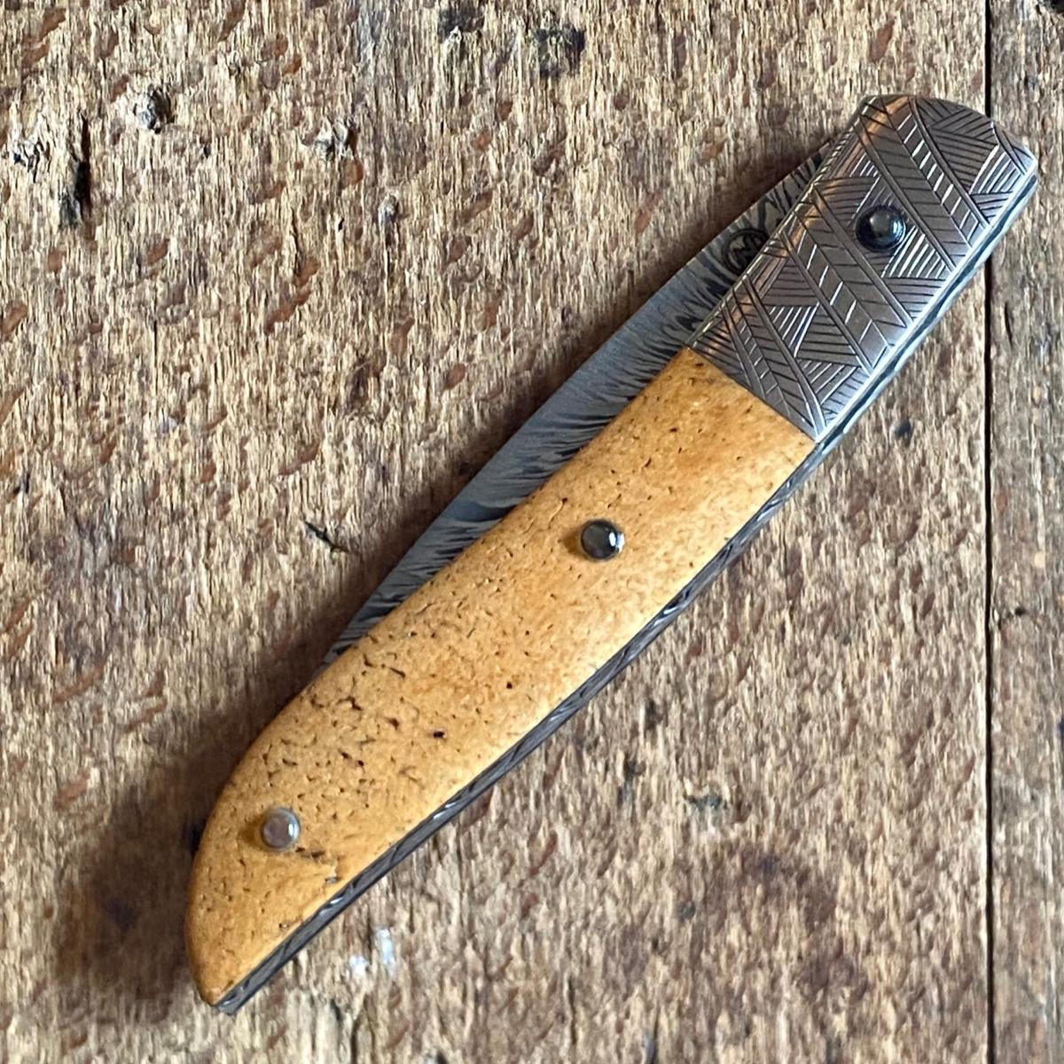 Manche en Os de Baleine Fossile et nacre noire